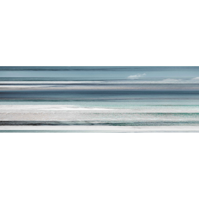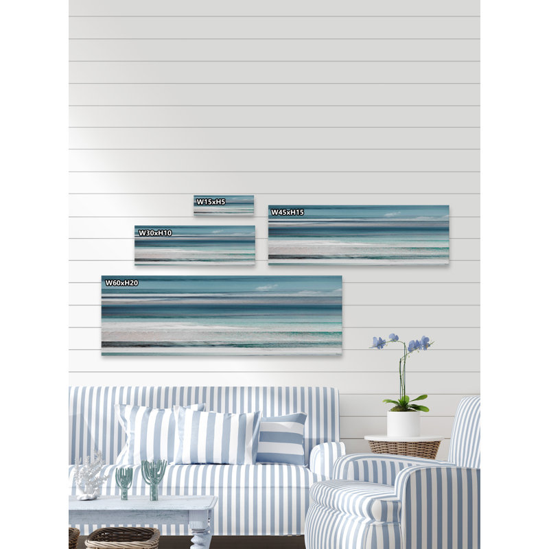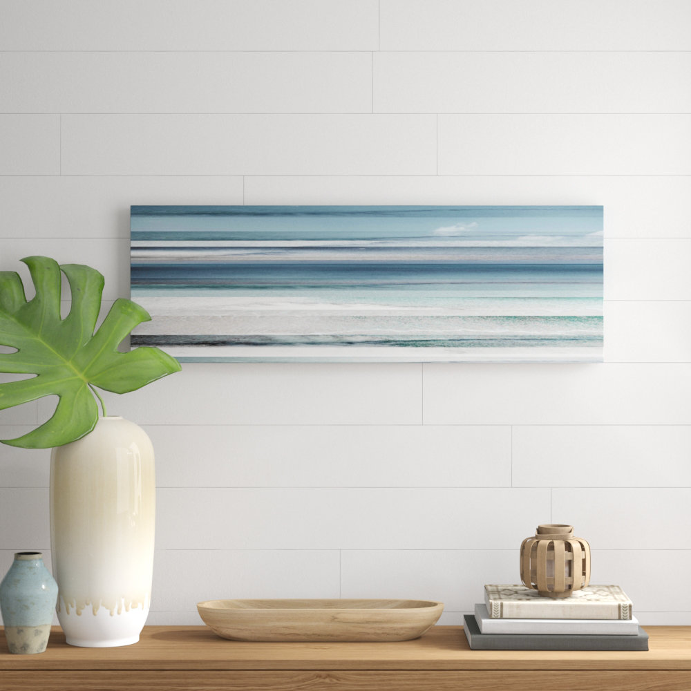This piece of wall art brings a breezy, natural, coastal farmhouse look to your walls. It showcases a painting print with streaks of blue, gray, and white hues to create an abstract ocean landscape. T…. Read More.