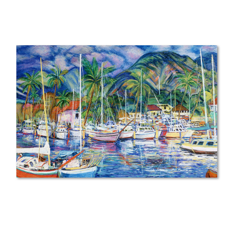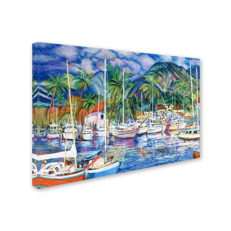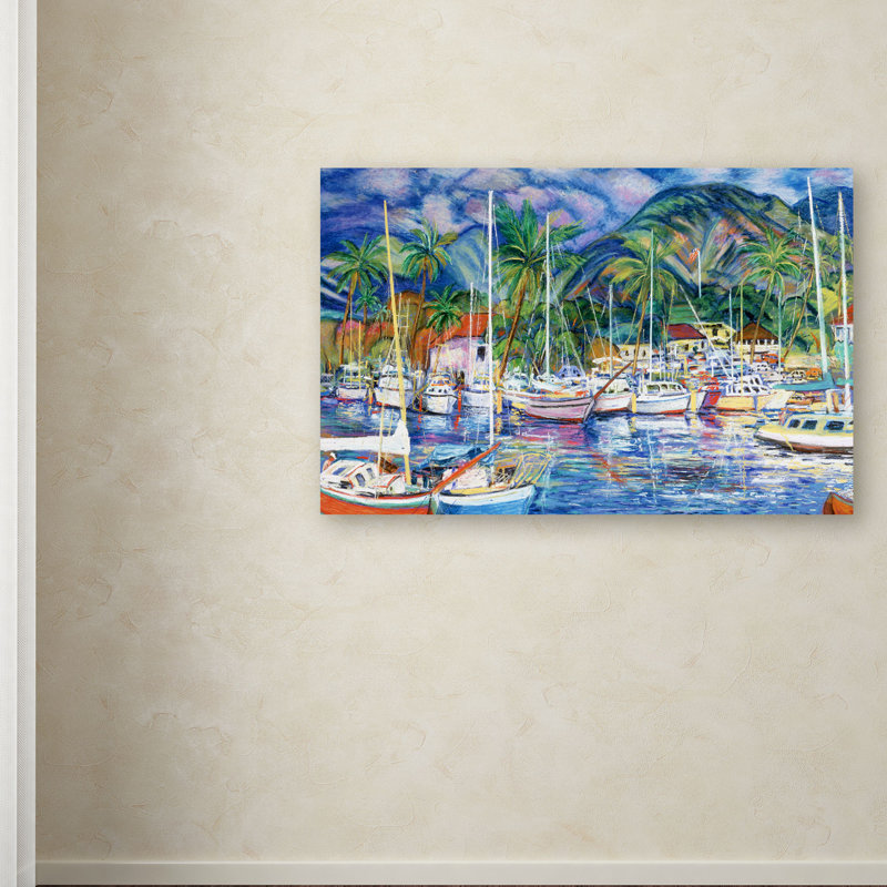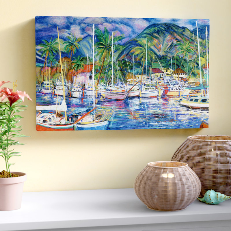 Lending additional layers of color and texture, wall art effectively creates eye-catching focal points in any ensemble. Bring the tranquil views from a tropical harbor to your home with this painting print depicting the serenity of anchored boats in a peaceful marina. Made in the USA, this canvas-wrapped print features vivid colors and a touch of texture. From beachside bungalows to suburban homes, this nautical-themed print offers a contemporary style to any abode.