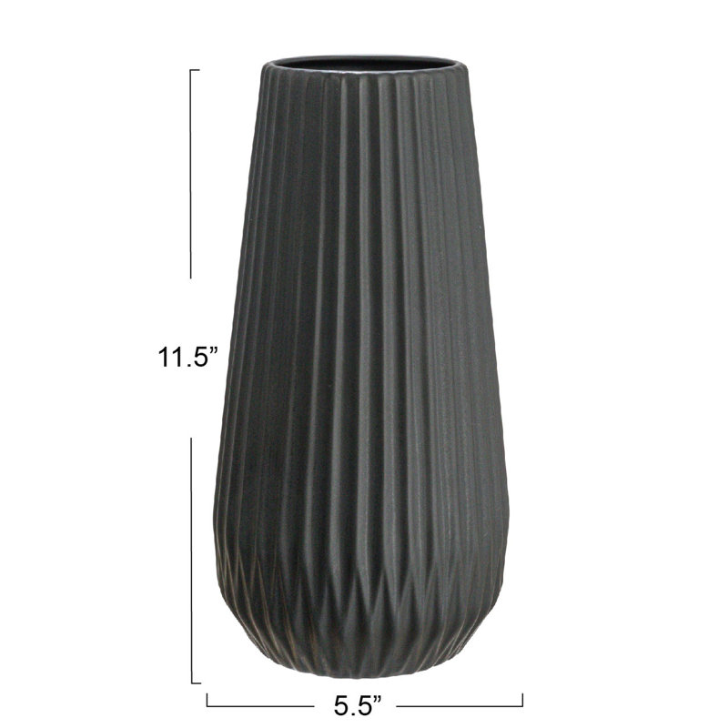 This tall white stoneware fluted vase with embossed lines is a unique and eye-catching piece of decor that can elevate any space. The vase’s fluted body and narrow neck create a geometric pattern that adds texture and dimension to the matte white surface. The vase is made of white stoneware, a type of clay that is known for its durability and quality. The vase is designed to hold long-stemmed flowers or foliage, and it can bring some freshness and elegance to any room. The vase measures 5.5 inches in diameter and 11.5 inches in height, and it can stand out on its own or in a group. This versatile vase is a beautiful addition to any home. It can be used to display flowers, foliage, or other decorative objects. The vase’s unique shape and geometric pattern make it a conversation starter, and its durable construction means that it will last for years to come.