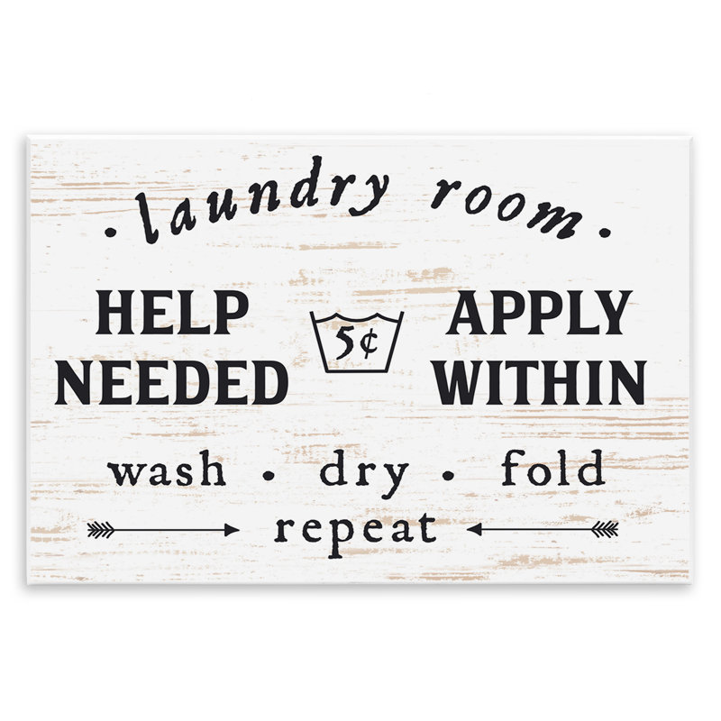 Laundry Room Help Needed Apply Within’ – Textual Art Print on Canvas
