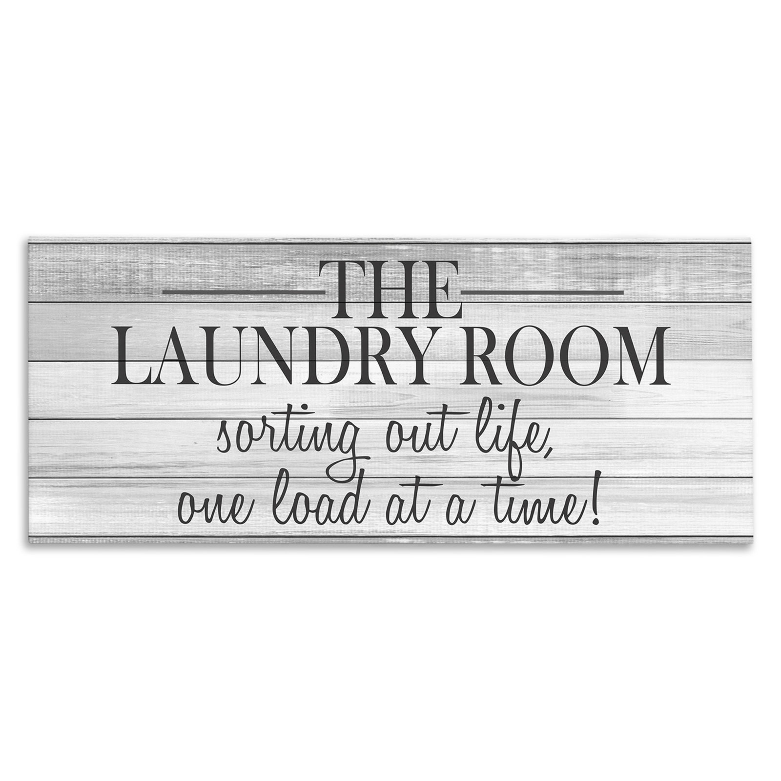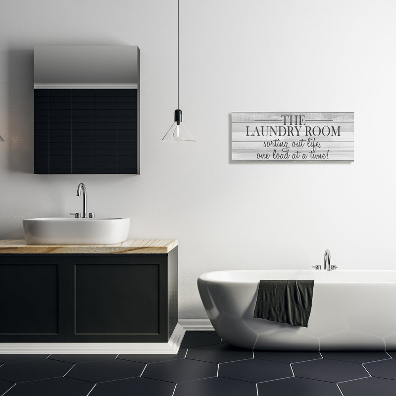 This textual art pairs a charming modern farmhouse look with a positive everyday message for your laundry room. It’s crafted from wood in a wide, narrow rectangle with a distressed white background and black text that reads, “The Laundry Room / Sorting out life one load at a time!” We love the handwritten look of the font that adds to the rustic character. For the finishing touch, this wall art comes with mounting hardware, so it’s ready to hang right out of the box.