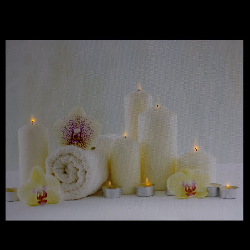 LED Lighted Candles and Orchids Spa Inspired Canvas Wall Art 15.75″