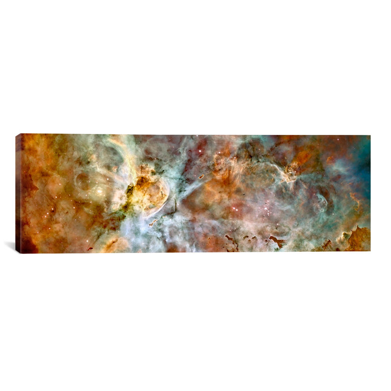 Splash the endless beauty and mystery of the cosmos across your walls with this painting print on canvas, showcasing an ethereal shot of the Carina Nebula from the Hubble Telescope. Made in the USA, this artful image is printed on 100% cotton canvas, then stretched and gallery-wrapped over an anti-shrink pine wood stretcher bar frame. Striking a wide rectangular silhouette, this piece arrives ready to hang right out of the box with wall-mounting accessories included.