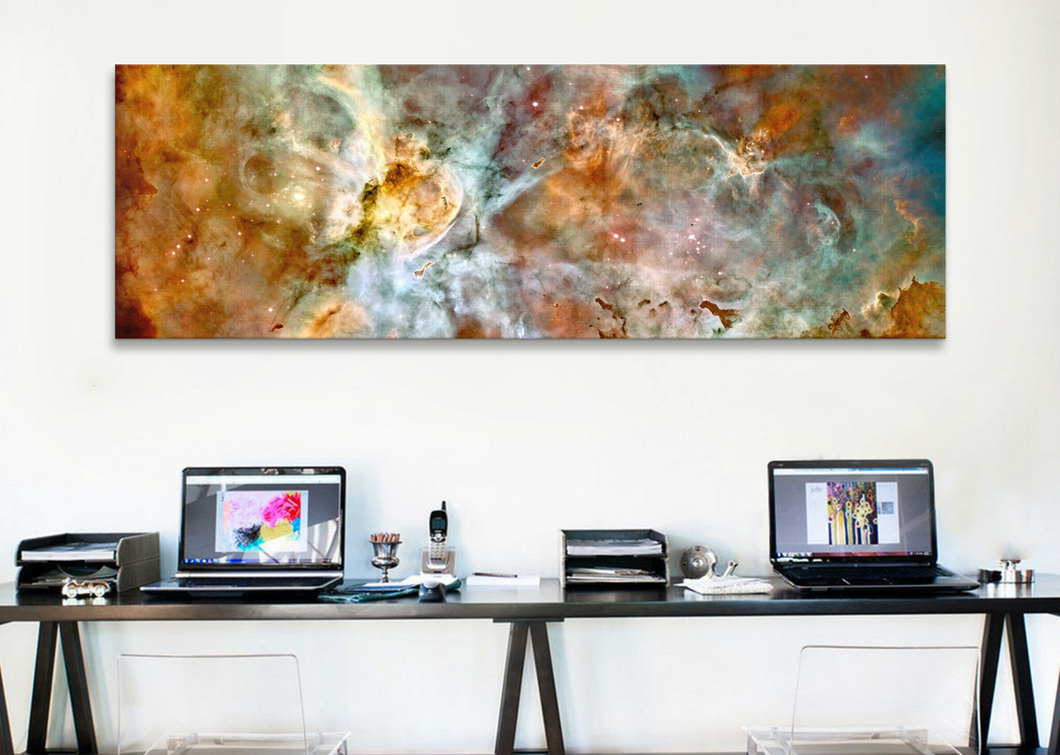 Splash the endless beauty and mystery of the cosmos across your walls with this painting print on canvas, showcasing an ethereal shot of the Carina Nebula from the Hubble Telescope. Made in the USA, t…. Read More.