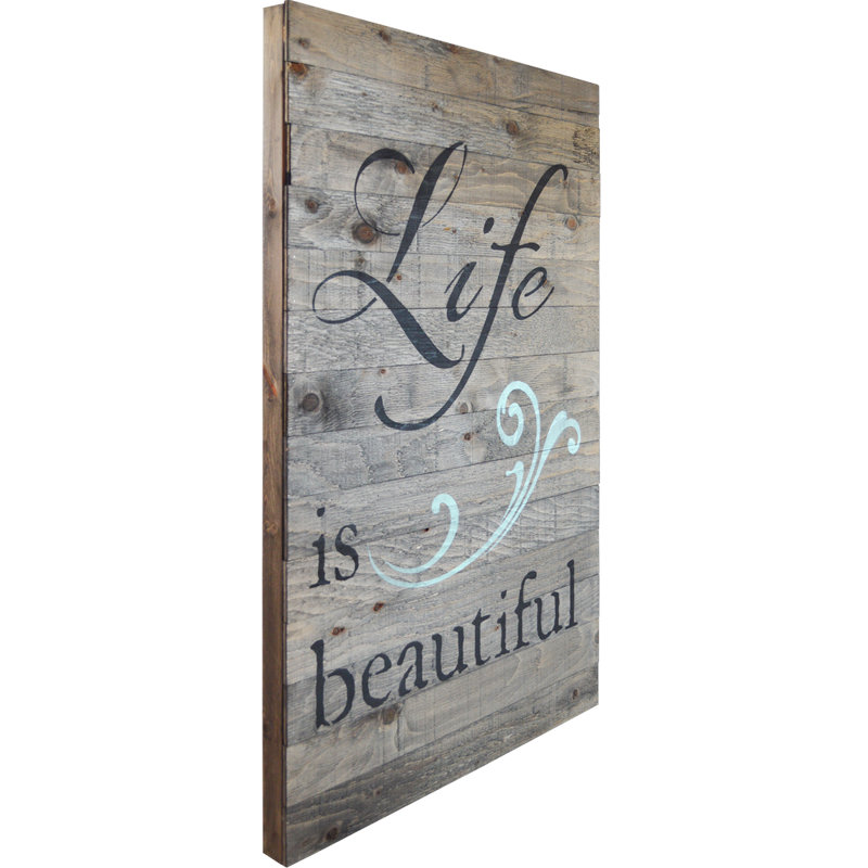 This wooden sign is made from real wood and finished in a rustic, distressed finish to give a authentic antique and old world charm feel. Winston Porter has hand made this sign just for you to the highest standards. Winston Porter takes pride in its work and designs. This design features an fun and inspiring message “Life is beautiful” on a rustic barn wood background.