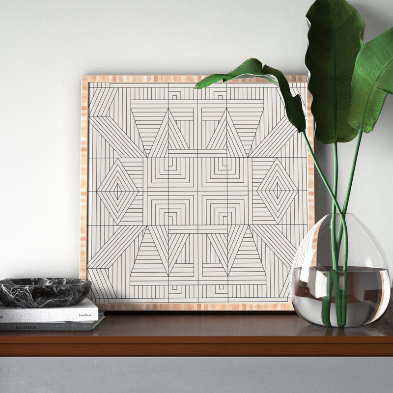 This graphic art print modernizes your space with a geometric design in a minimalist color palette. Originally by Holli Zollinger, “Line Mandala” depicts an eclectic mix of abstract patterns in bold black-and-white hues. We love that it complements your at-home gallery or looks great as a single accent piece. Plus, this wall art comes ready to hang and inspire – it’s set behind a slim wooden frame with a subtle mosaic look. Mounting hardware is also included.