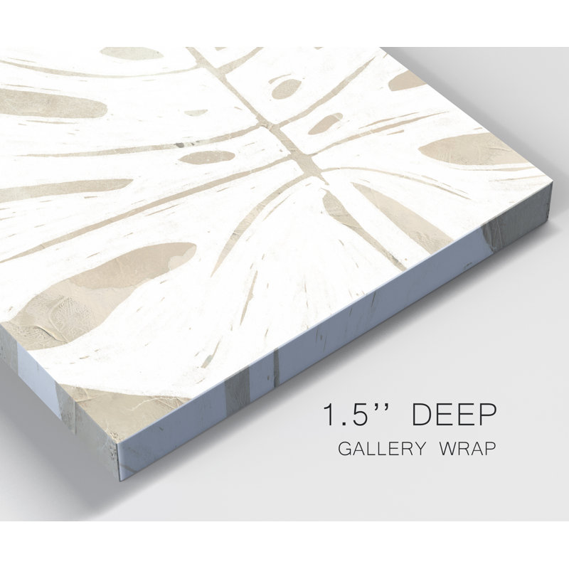 Infuse your living space with the calm and serene look of this painting print. This print, titled “Linen Tropical Silhouette I” depicts a close-up image of a fern or palm in muted shades of beige and off-white. We love the misty look and the many shades of blue that blend the water and the sky. It is printed on wrapped canvas with a wood stretcher board and is mountable horizontally or vertically. Plus, it’s available in several sizes so you’re sure to find the one that best suits your space. Mounting hardware included.