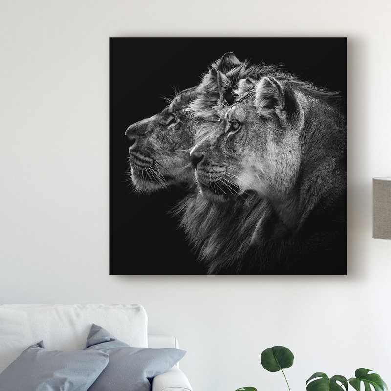 Bedroom ,or Office Décor – 18×18 ,Wrapped Canvas Wall Art – Laurent Lothare Dambreville 'Lion And Lioness Portrait' Wall Art for Living Room |