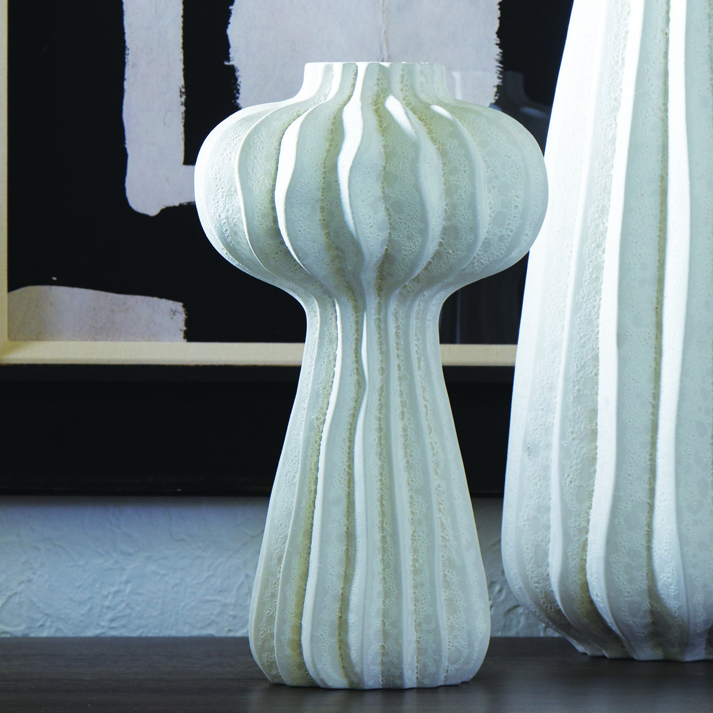 Light-catching crisp, irregular ridges accentuate the unusual and organic shapes. This artful ceramic vase is handcrafted by artisans….. Read More.