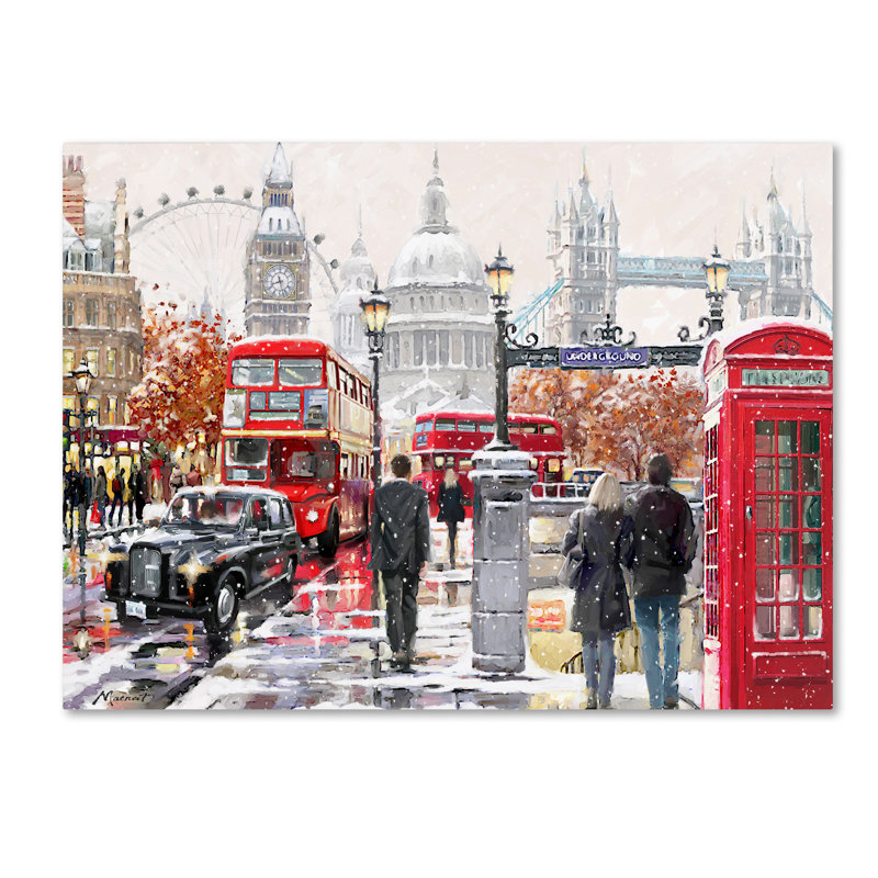 - This ready to hang, gallery-wrapped art piece features people walking on snowy sidewalks in London