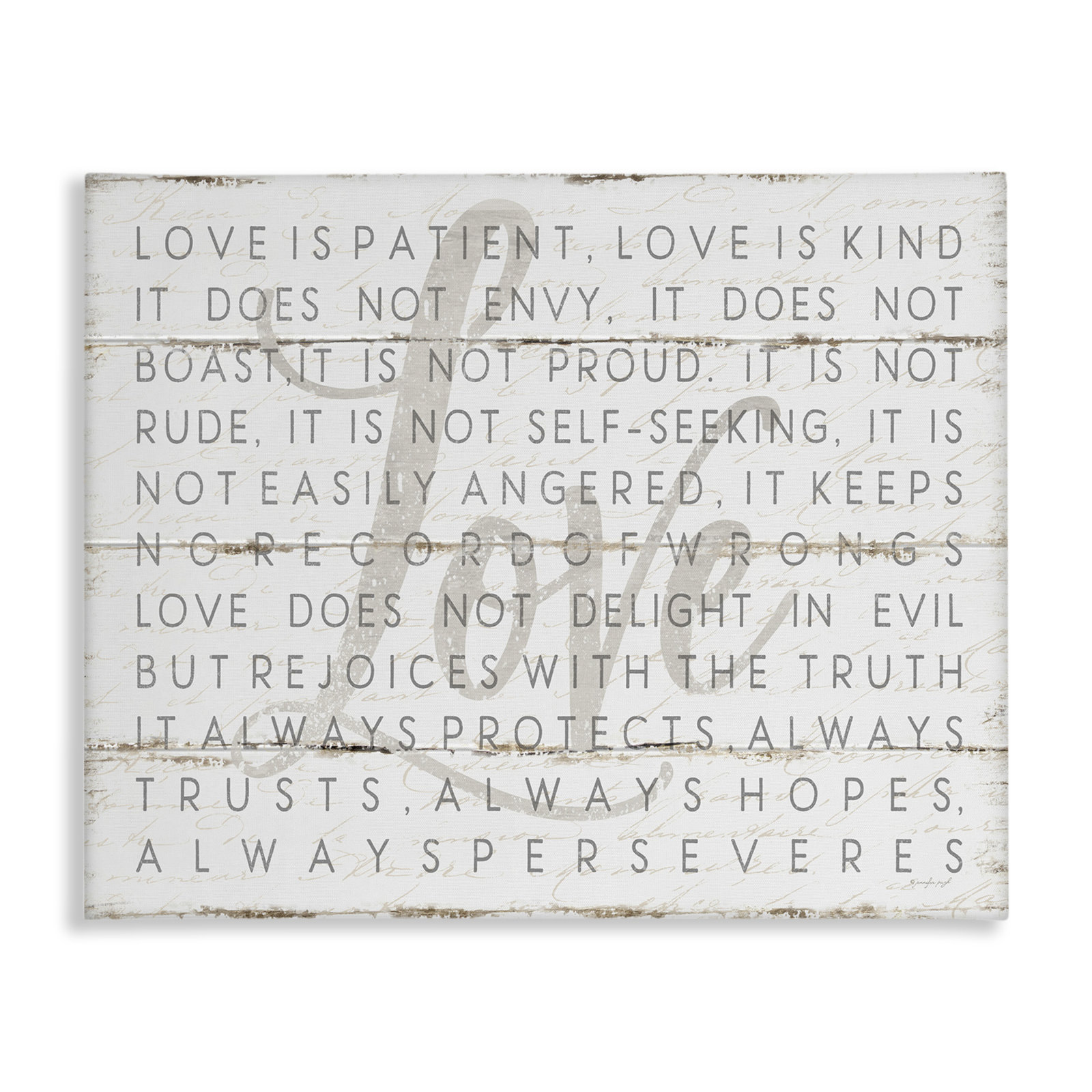 Love Is Patient Planked Look’ by Jennifer Pugh – Graphic Art Print