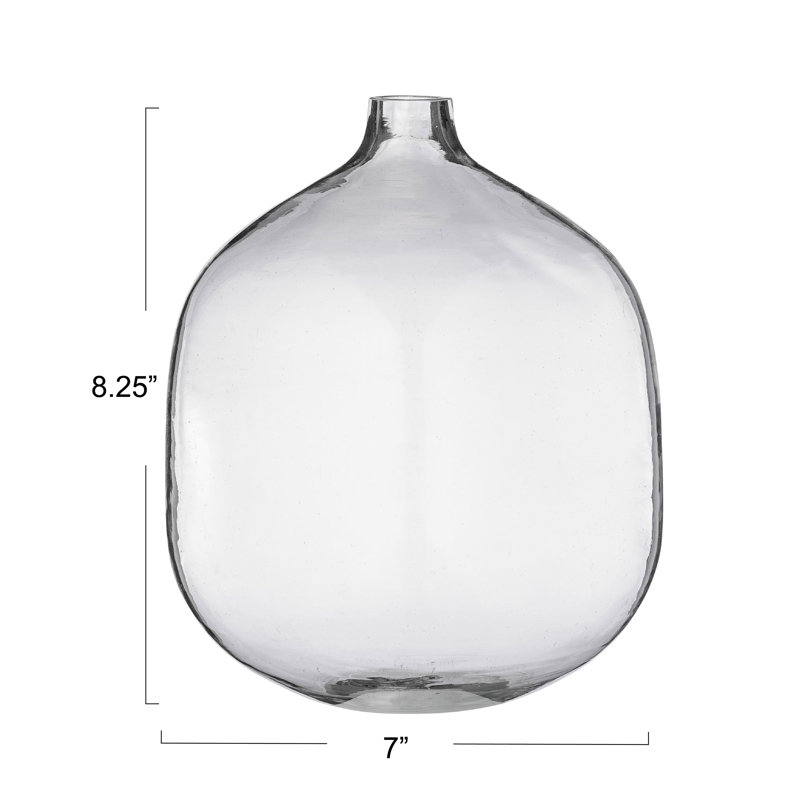 - This vase is a simple and elegant piece of glassware that features a round shape and a narrow lip