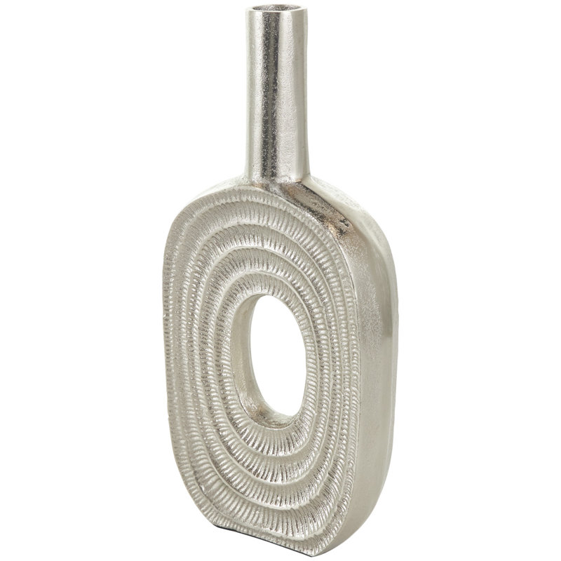Maebri Aluminum Metal Circular Decorative Vase with Linear Etchings