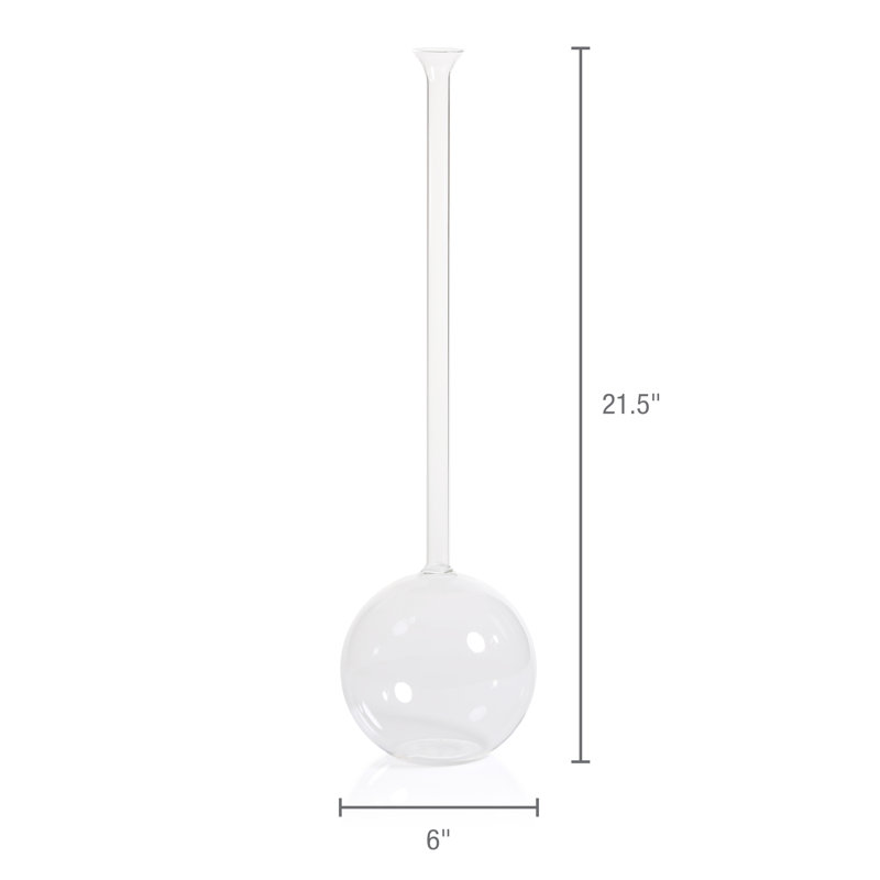 Vases are one of the most popular centerpiece components used in receptions, anniversary parties, and other significant events. This glass vase is extremely elegant, with a lovely profile that features a mock neck that contrasts beautifully with the sphere base to add a touch of drama while showcasing whatever captivating bouquet you choose to place inside.