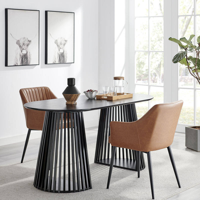 The Masanari Diamant Reverse Hourglass Vase offers a blend of minimalist elegance and artisanal charm, perfect for elevating your home decor in any room. Crafted with a smooth matte black finish on its upper half, this vase exudes sleek sophistication, while the rich woodgrain laminate finish at the base adds warmth and sophistication. The unique sculpted shape, with its angled forms, makes this vase an eye-catching addition to any room. The contrasting materials and colors create a bold visual statement, making the Masanari Hourglass Vase a perfect centerpiece for contemporary, rustic, or industrial spaces. The neutral tones create a calming, versatile palette that easily completements a range of interior styles, from modern to bohemian. Designed with a sharp hourglass form, the Masanari Hourglass vase has a narrow opening to chicly highlight your favorite flowers. Its narrow neck is ideal for displaying single-stemmed floral arrangements, dried botanicals, or even standing alone as a sculptural accent. This tapered tabletop vase adds a refined yet organic touch to your decor, creating a serene focal point that draws the eye with its subtle artistry. The clean lines and understated design of this vase adds stylish flair to any table, countertop, or shelf. Whether placed on a coffee table, shelf, or mantel, the Masanari Diamant Reverse Hourglass Tabletop Vase brings a harmonious blend of modern refinement and contemporary form, making it a versatile and stylish choice for any decor.