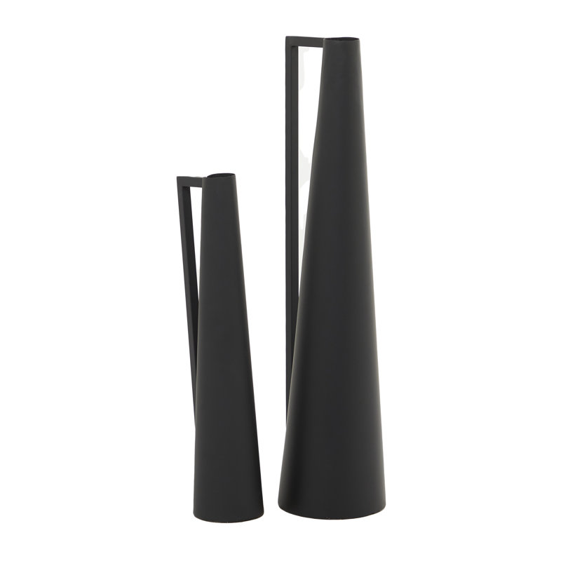 - The matte black tabletop decor is constructed of forged metal to create a set of cone-shaped vases