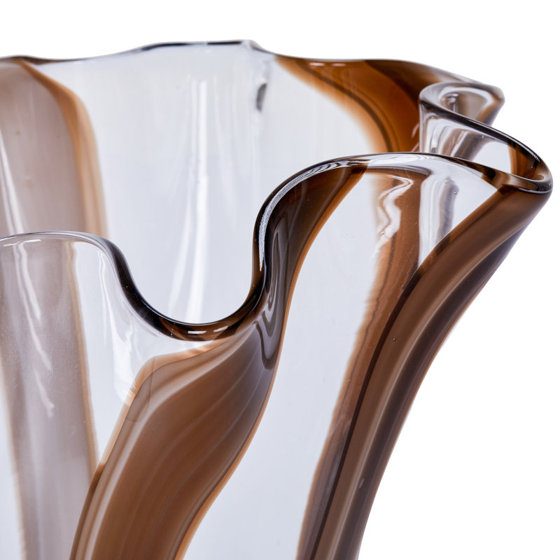 Bring a touch of timeless romance into your home with this enchanting set of handblown glass vases. Each piece, kissed by delicate ribbons of color and crowned with softly ruffled rims, feels like a w…. Read More.