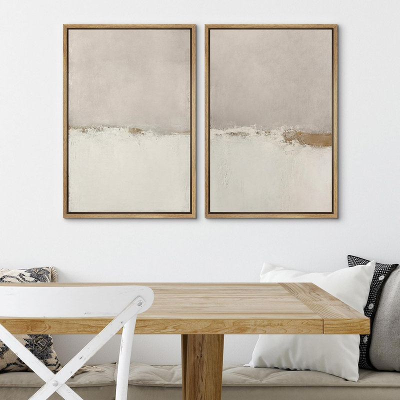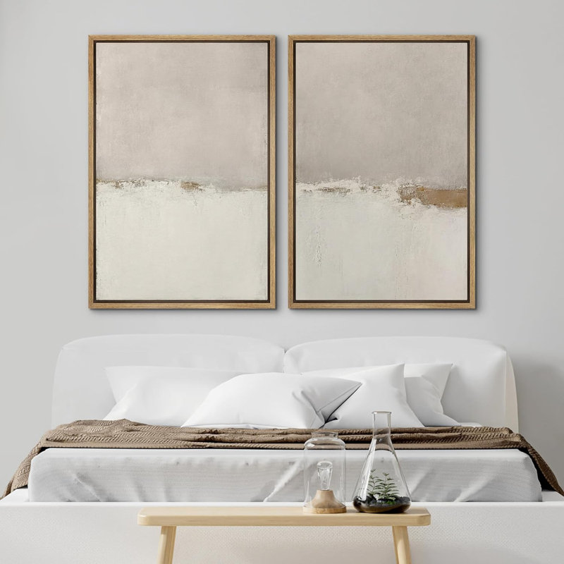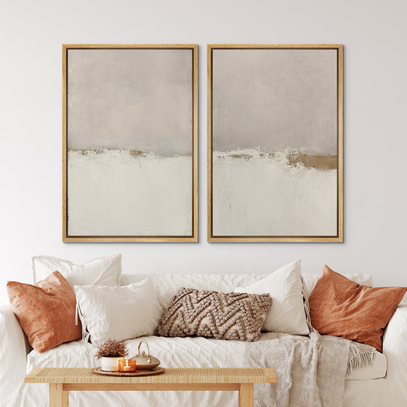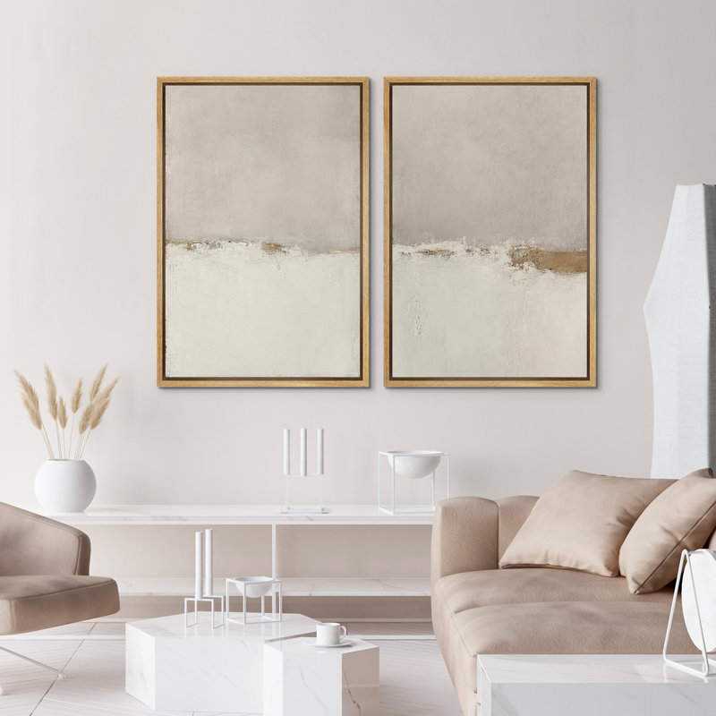 Minimal Landscape Beige Tan Abstract Grunge Modern Art Minimalist Neutral Decor Frame 2 Pieces Picture – Canvas Print