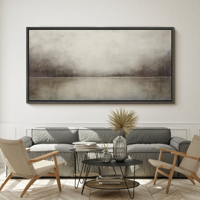 Minimal Landscape Tranquil Neutral Abstract Landscape Retro Moody Extra Large Framed Art Home Decor