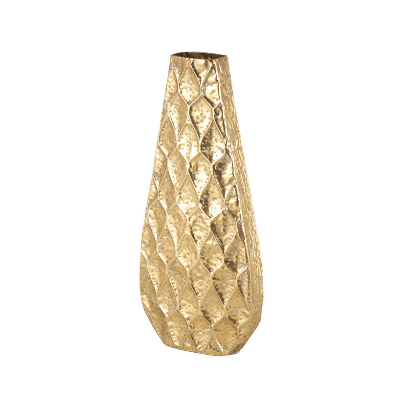 - The gold metal vase measures 12.5L x 4.65W x 27.55H inches, and weighs 4.785 lbs