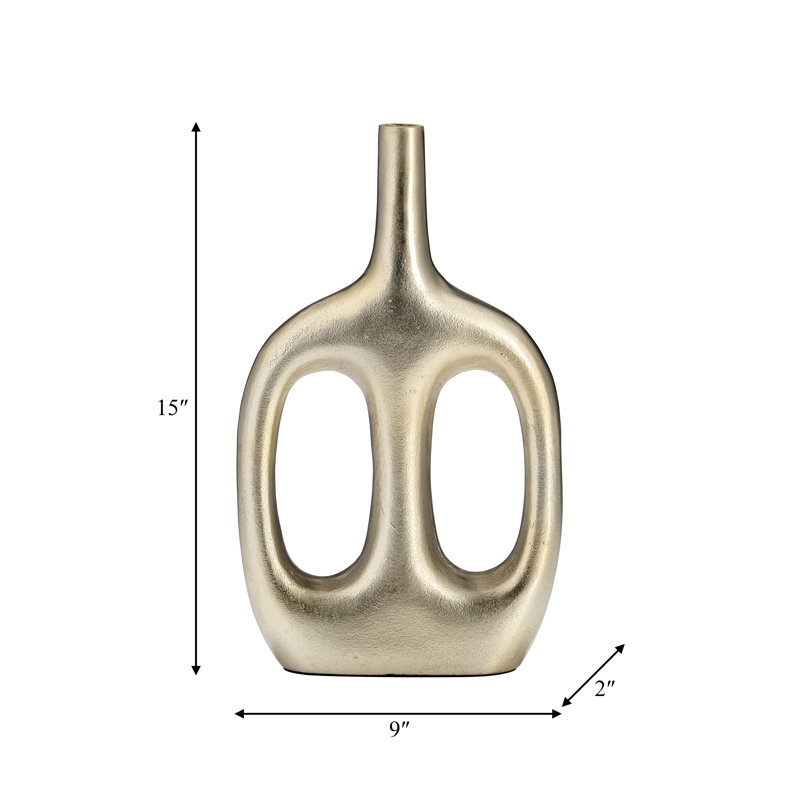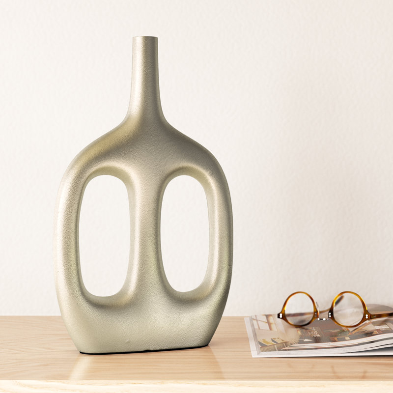 Enhance your home decor with this modern metal vase, crafted from durable aluminum for a sleek and sophisticated touch. Featuring a sculptural open-frame design, this decorative vase adds contemporary artistry to any space, whether displayed in a living room, bedroom, entryway, or office. Its sturdy construction ensures stability, making it a reliable accent for dried botanicals or as a striking standalone decor piece. Designed to complement minimalist and modern interiors, this versatile vase effortlessly blends with various styles, bringing a touch of elegance to any setting. The refined craftsmanship and unique silhouette create a bold visual statement, making it a must-have for those who appreciate modern home accessories. Elevate your decor instantly with this eye-catching centerpiece that seamlessly integrates style and functionality. Add a touch of artistry to your space today.