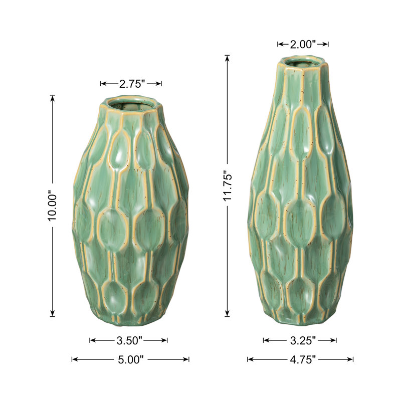 Modern Geometric Green Ceramic Table Vases (Set of 2)