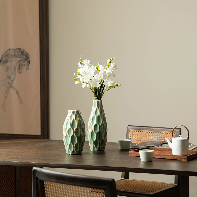 Our ceramic vase sets are crafted from premium ceramic material and finished with a high-gloss glaze, presenting a refreshing green surface that combines geometric and linear patterns to showcase a u…. Read More.