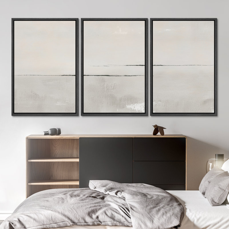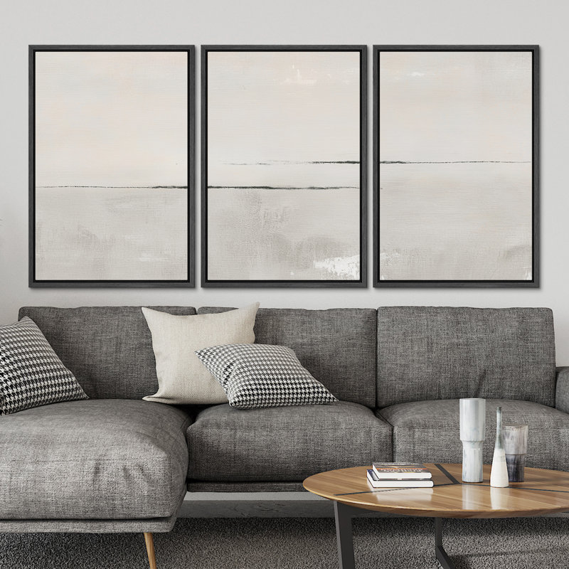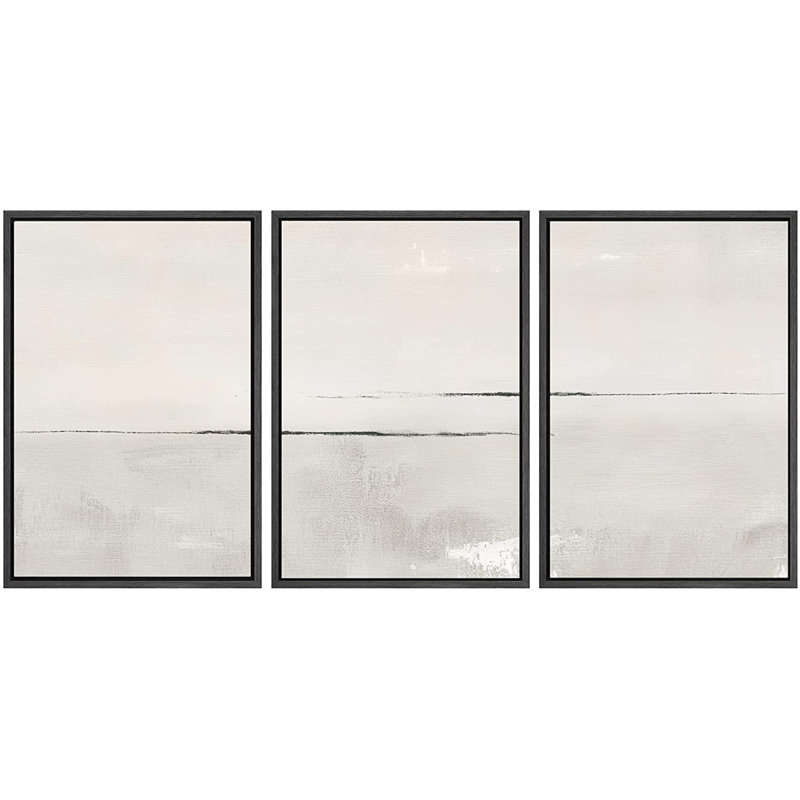 Modern Large Duotone Pastel Minimalist Landscape Subtle Wall Art Framed Canvas 3 Pieces Print