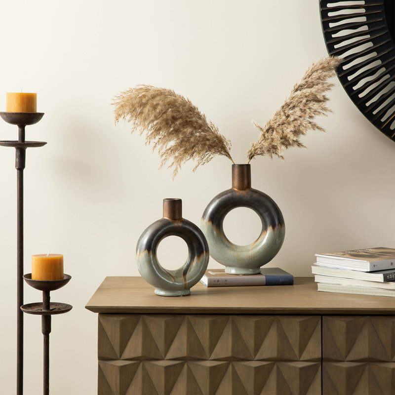 Modern Two-Tone Color With Circle Hollow Ceramic Table Vases (Set of 2)