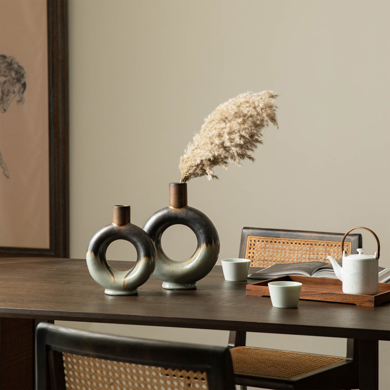 Our ceramic vase sets are crafted from premium ceramic material and finished with a high-gloss glaze by hand. Featuring a hollow donut shape and a striking contrast of unique tricolor glaze, this cera…. Read More.