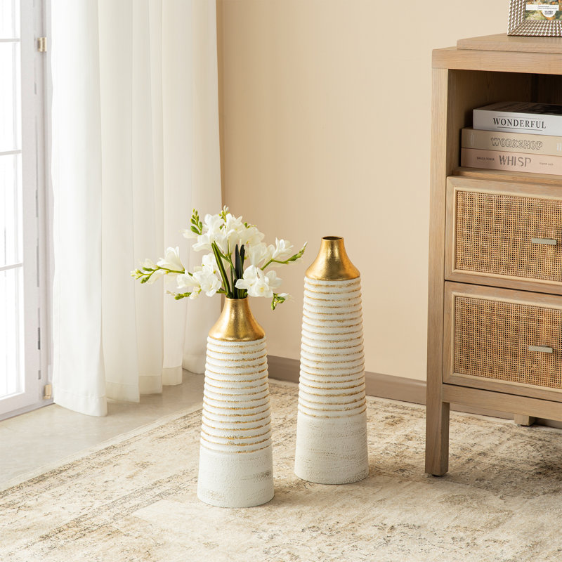 Be the first to review “Modern White & Gold Stripes Metal Vase Floor Vase (Set of 2)” Cancel reply