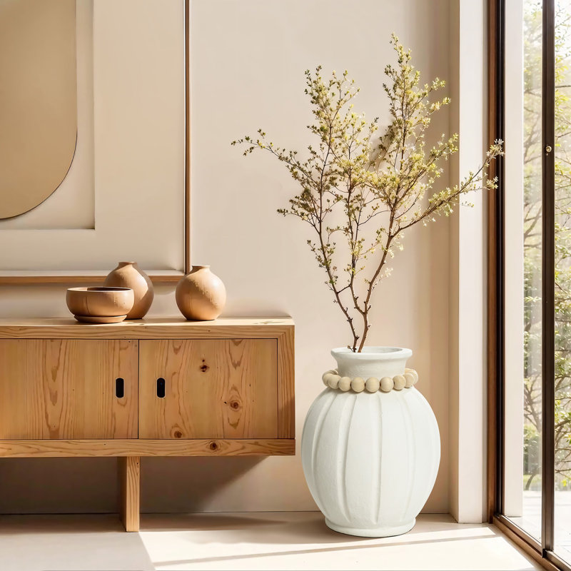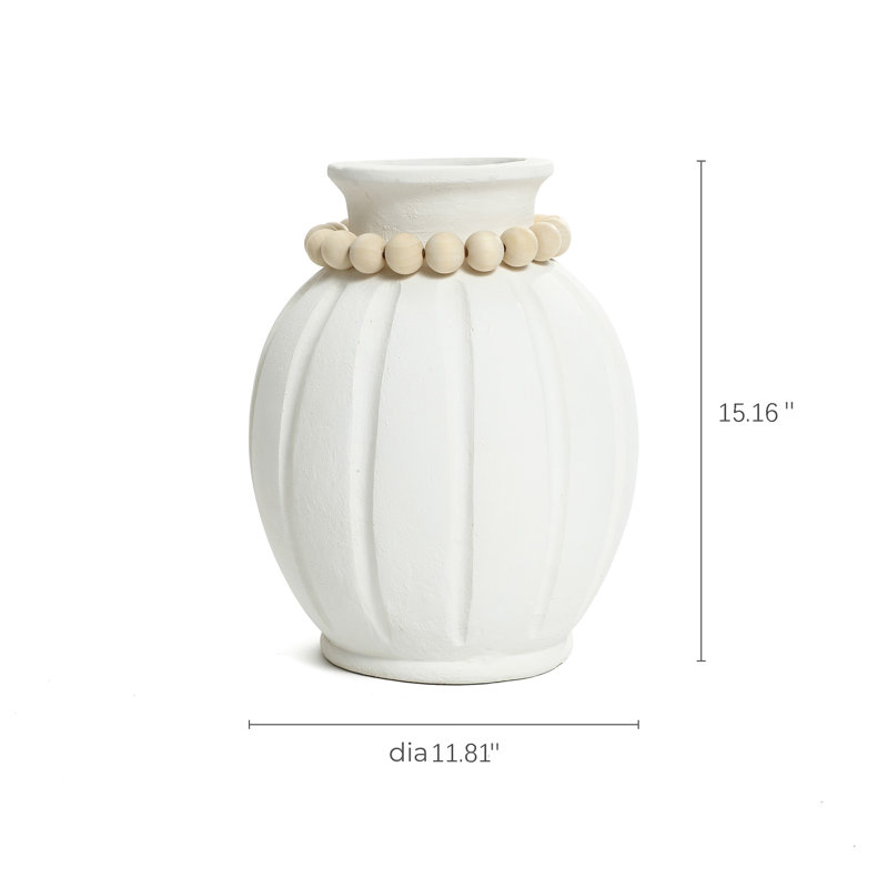 Modern White MgO 15-Inch Tall Round Vase