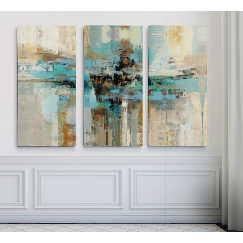 Do you have a blank wall that’s making your room feel uninspired? Adding a piece of wall decor like this is a great option for lending any space a bright pop and a personalized touch to any bare space. Perfect for lending your space a modern look, this piece features tan, teal, brown, gray, and black colors for an eye-catching, bright composition. Printed in the USA, each piece in this triptych is wrapped around a wood frame for a gallery-ready look. And since mounting hardware is included, it’s ready to hang right out of the box.