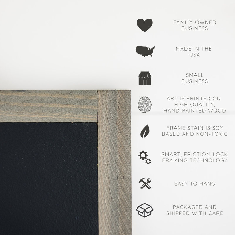 - Art is printed on high-quality, hand-painted wood, and framed in solid wood trim