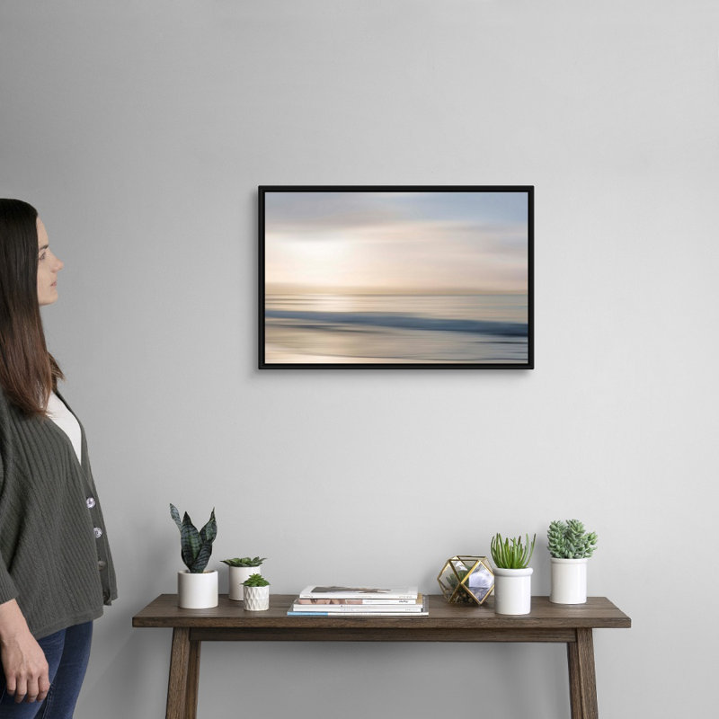 This painting print features a breathtaking ocean view of the waves with the sun shimmering through hazy clouds. Designed by Alex Hanson and titled “Morning Rise,” this piece comes in soothing natural hues of beige, blue, and cream that complement almost any space and make you feel like you’re walking on the beach. This acrylic painting is printed on a rectangular canvas with a variety of size options available. Wall-mounting hardware is also included for hassle-free hanging right out of the box.