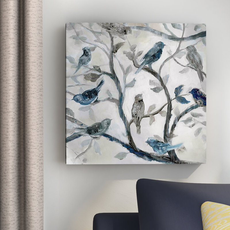 This painting print brings a nature-inspired scene and soothing palette to your bedroom or living space. Originally made in the USA using oil paints, “Morning Song II” is printed on a premium giclee canvas and depicts a stylized bird-dotted tree in blue and gray hues against a white sky. This piece arrives unframed, allowing you to hang it as is or customize it with the frame of your choice (sold separately). With its charming subject matter and whimsical style, it complements nearly any traditional or contemporary decor.