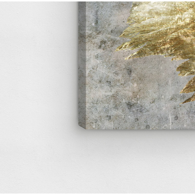 This stunning print features a pair of golden wings set against a gray background. Add a touch of extravagance to your home or office with this Greco-roman piece.