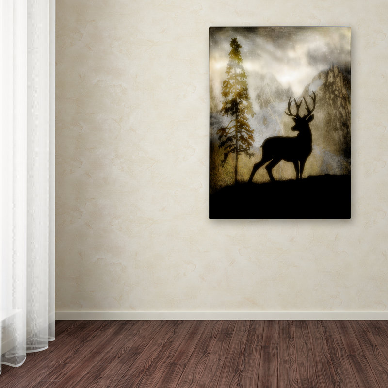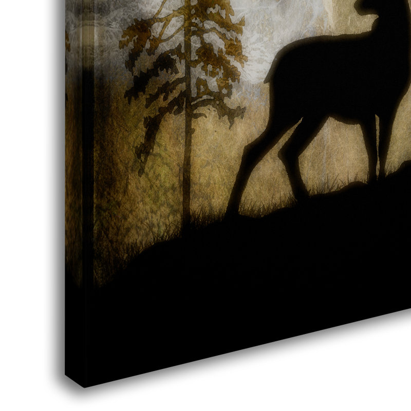 Draw the eye on any wall display with this striking canvas print. Featuring a deer silhouetted against gray-hued, hazy mountain terrain, this print brings a contemporary touch to a rustic, earthy look. Made in the USA, this print is gallery-wrapped for a professional touch. This piece arrives ready to hang, so it can go right from the box to your walls.