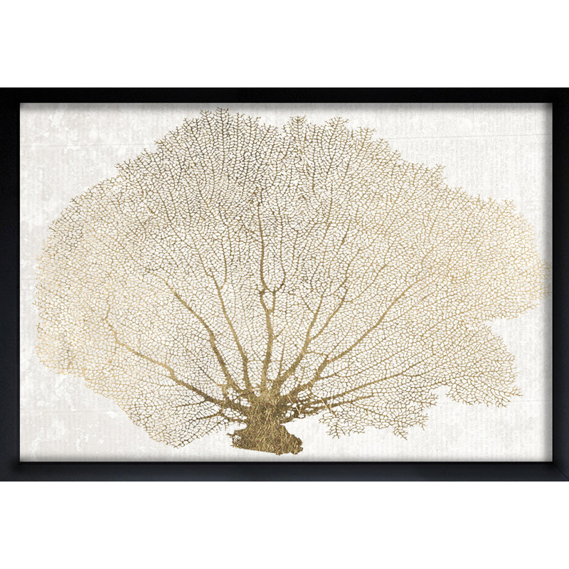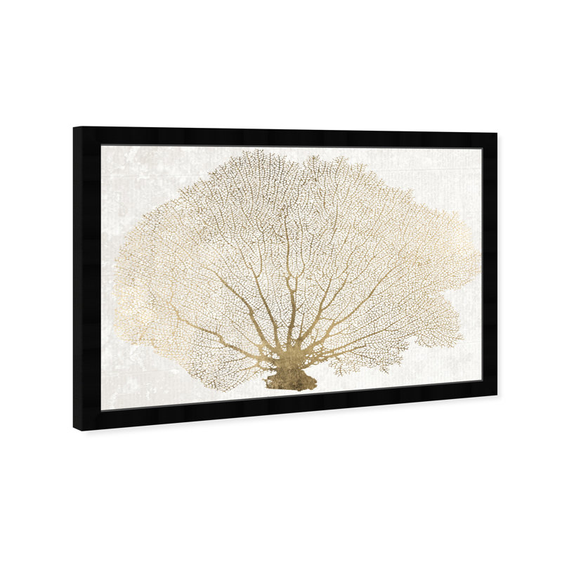 Nautical and Coastal Gold Coral Fan Marine Life by Oliver Gal – Floater Frame Graphic Art Print