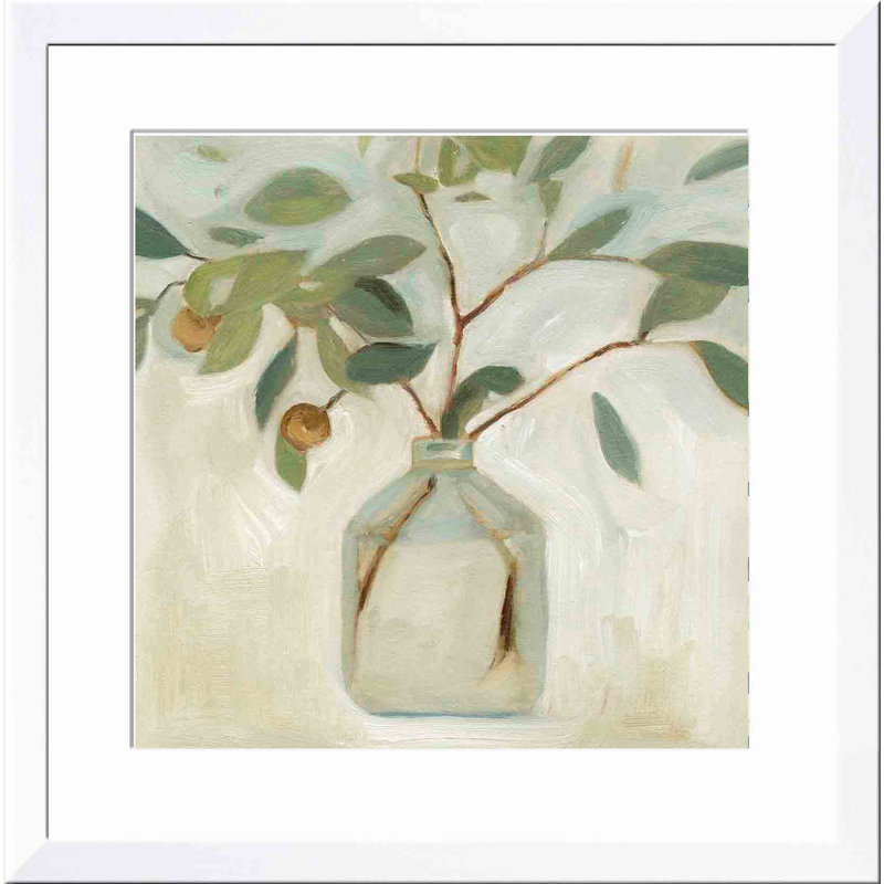 Still life paintings are a great way to bring a classic feel to any room. This one depicts an arrangement of olive branches in a clear glass vase. Earthy tones of green and light brown are the dominant tones in this painterly work. It’s printed on paper with a white mat surrounding the image, and it’s placed within a square frame to create a gallery-worthy look that we love. Wall-mounting hardware is also included for hassle-free hanging right out of the box.