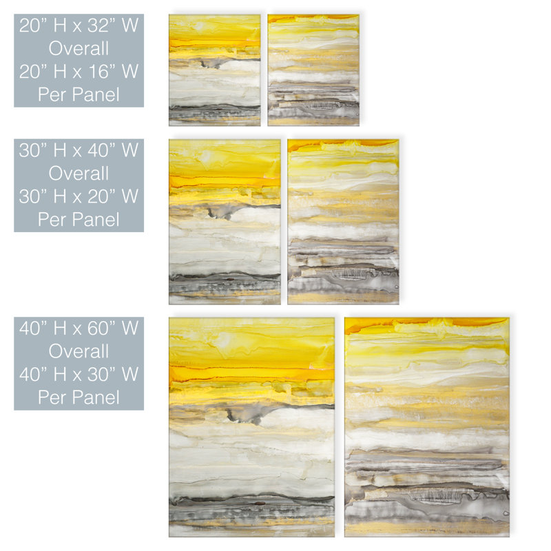 This 2-piece set of painting prints helps spruce up an empty wall, and it brings an eye-catching, industrial-inspired vibe to your space. Each one is a reproduction of an original work by Norman Wyatt Jr., and it features abstract horizontal brushstrokes in radiant yellow tones balanced out by neutral gray and white hues. Modern and reminiscent of summertime sunsets, these oil paintings are printed on gallery-wrapped canvas and have hooks on the back for hassle-free hanging right out of the box.