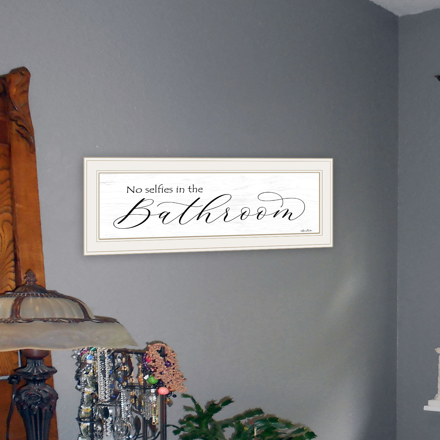 No Selfies in the Bathroom Framed Wall Art for Living Room, Home Wall Decor Print by Lori Deiter