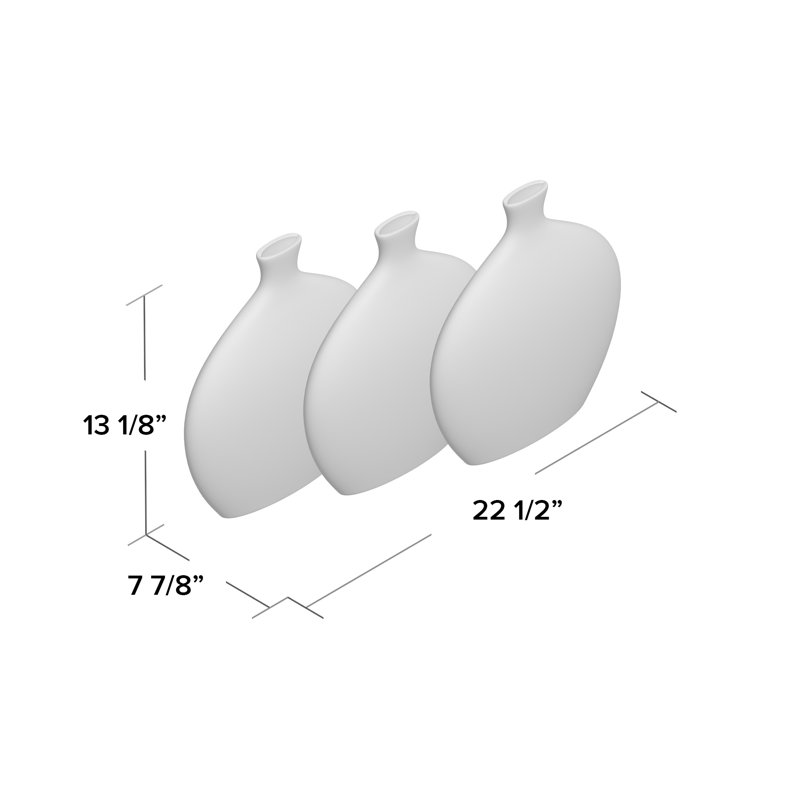 Display these white, light gray, and dark gray vases on top of a wooden surface and with abstract decorations and paintings. Designed with felt or rubber stoppers at the base that prevent scratching furniture and table tops, as well as sliding around. This item ships in 1 carton. Suitable for indoor use only. This item ships fully assembled in one piece. This black colored vase comes as a set of 3. Contemporary style. Vases have a 1.20 in, 1.20 in, and 1.20 in mouth openings.