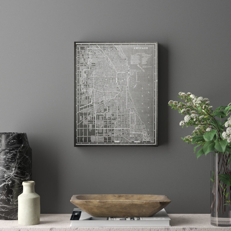 This graphic art print showcases an annotated sketch of Chicago from an overhead perspective, giving it a vintage vibe in any space. It’s made in the USA in hues of gray, and it’s printed on premium giclee paper using high-quality inks. It’s hand-stretched and gallery-wrapped over a wooden stretcher bar frame for a professional look. Striking a rectangular silhouette, this sketch is ready to hang right out of the box with wall-mounting hardware included for effortless installation.
