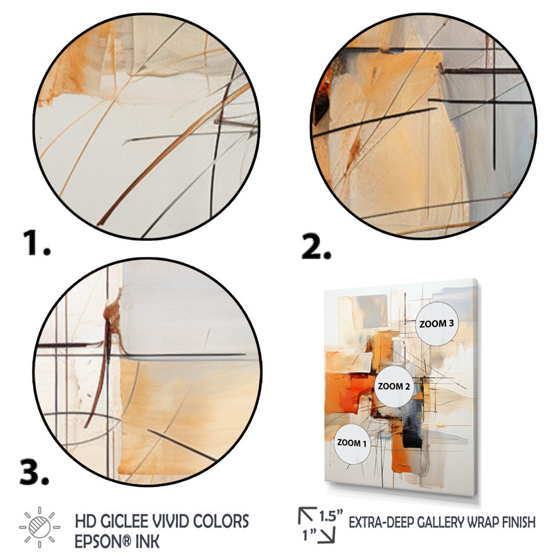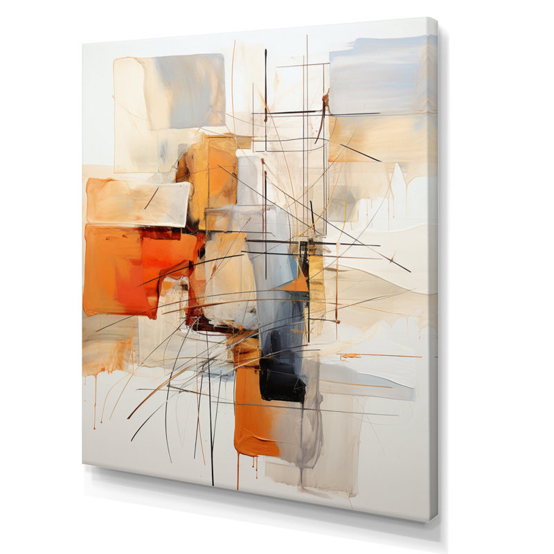 Orange Grey Line Art Abstract Expressionism – Minimalist Line Art Canvas Print