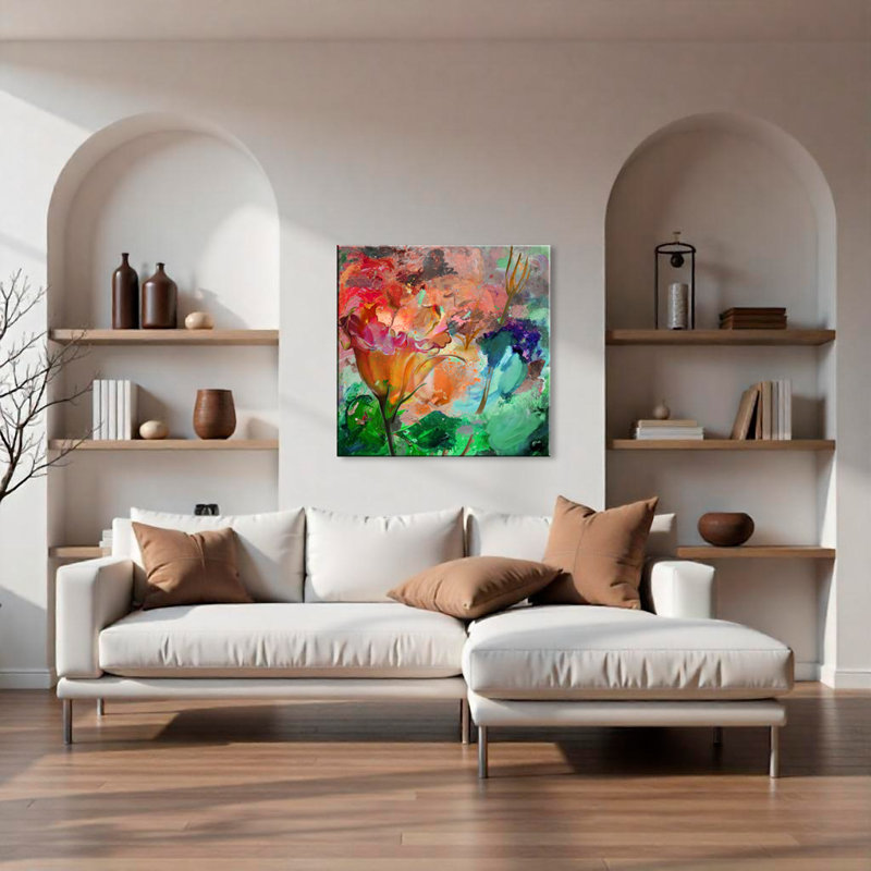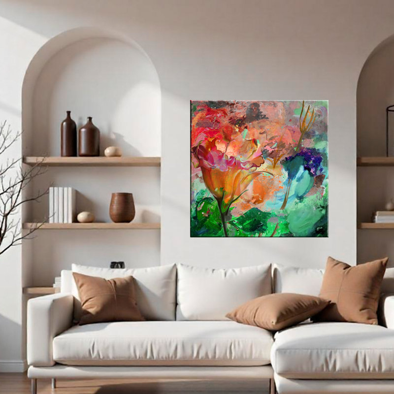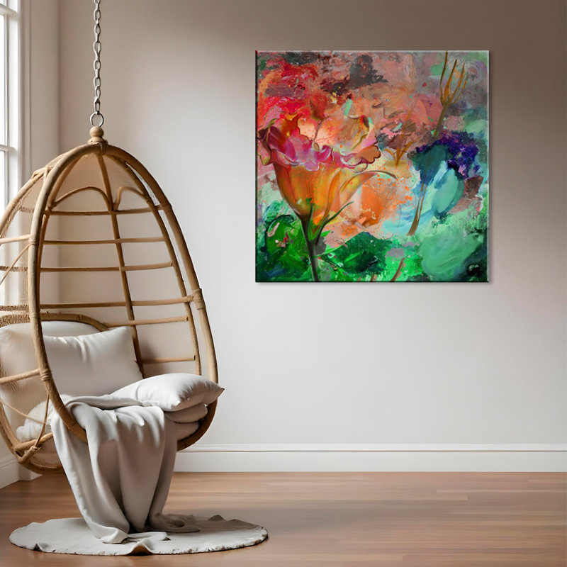 Bring a dull space back to life with this eye-catching canvas print, sure to spark style in any room. Showcasing a splashy floral abstract motif, it offers vibrant hues from red and orange to blue and…. Read More.
