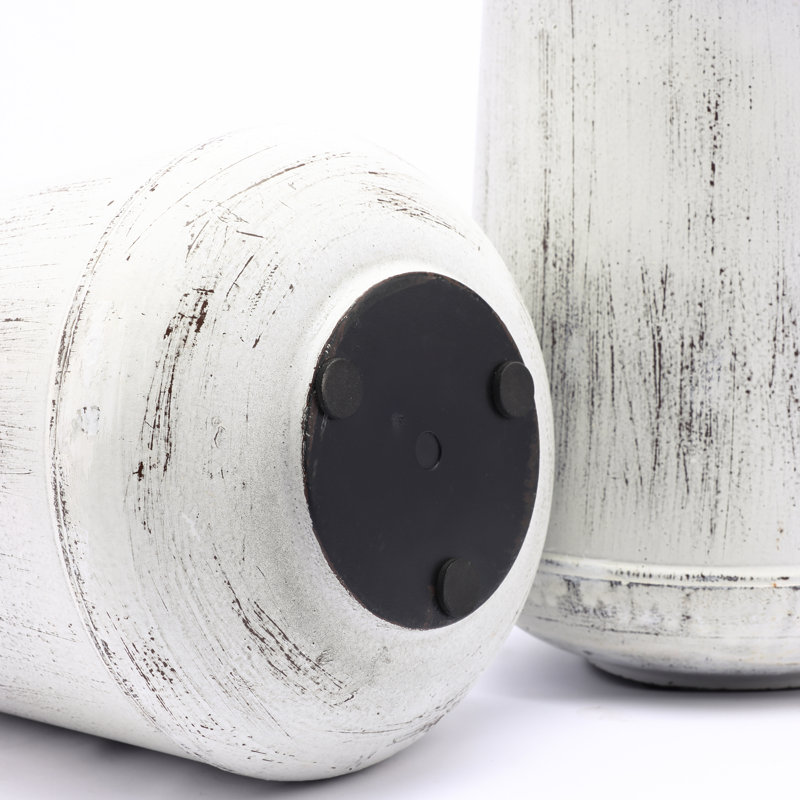 - Rustic Handcrafted Design – Jug-shaped metal vases with distressed off-white and rust glaze blend coastal and farmhouse styles.