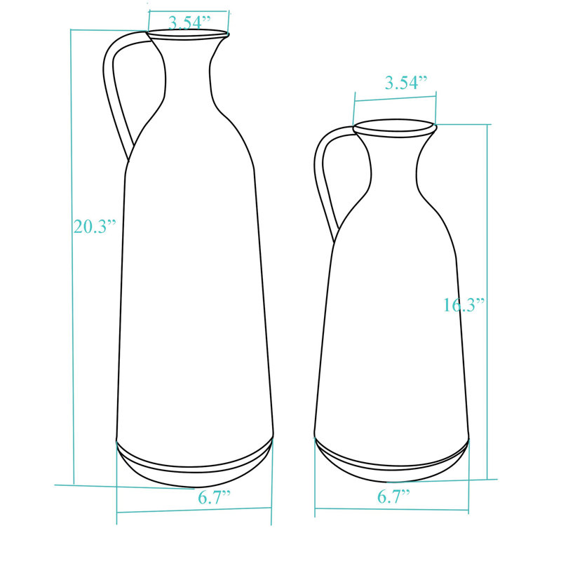 This 2-piece set of table vases is just the right coastal farmhouse touch for your dining table or entryway console table. They’re handmade from iron in a jug-shaped design and feature a distressed off-white finish that slowly fades to rust at the neck. The tallest vase measures 20.3″ tall, so this set is designed to create a focal point in your home. Since these vases aren’t watertight, we recommend filling them with your favorite dried or faux flowers.