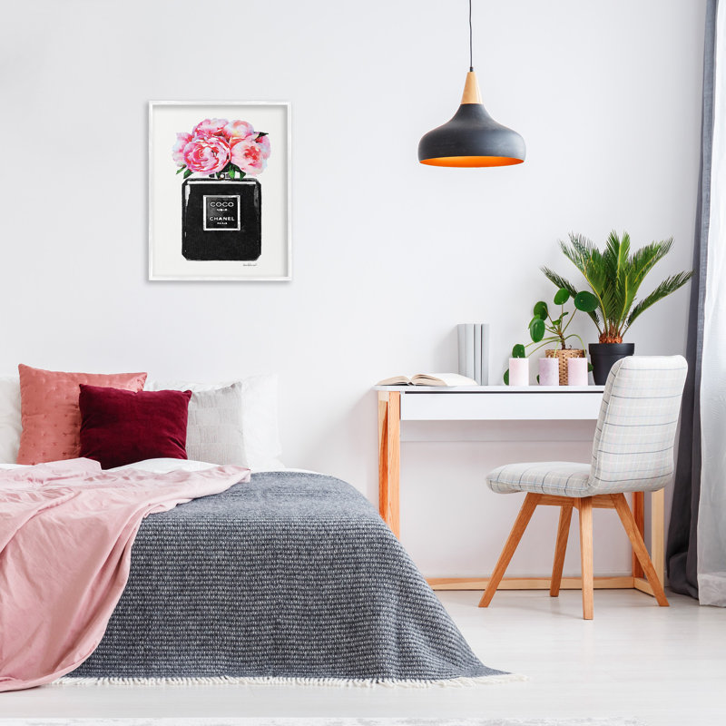 This Glam ‘Perfume Bottle Flower Peony’ Graphic Art Print on wood in Black is created with only the highest standards. They print with high-quality inks, and canvas and then hand cut and stretch it ov…. Read More.