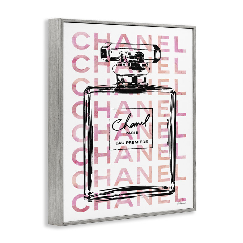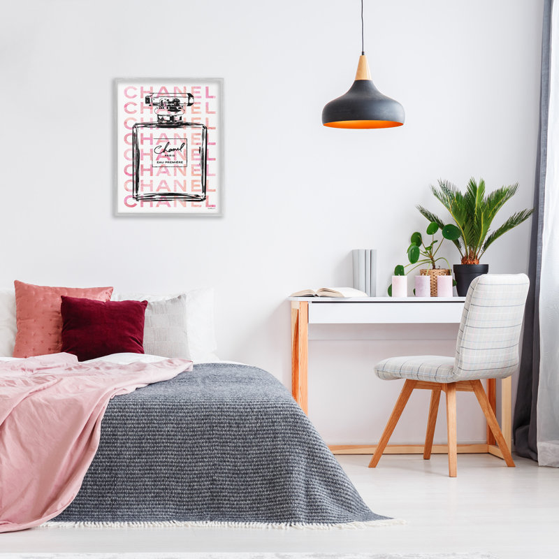 This graphic art print has a fashion-forward design that depicts the black outline of a perfume bottle accented by pink block lettering in the background. The bottle’s label adds glam style to this pi…. Read More.